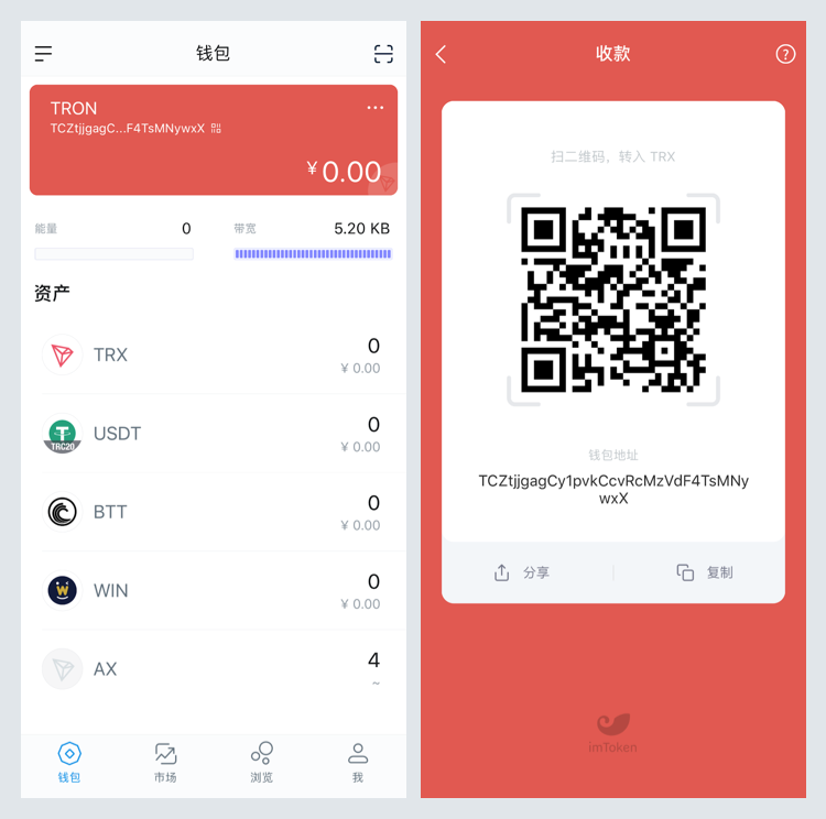 1. imToken支持哪些币种? 支持ETH、BTC、EOS、TRX以及多种ERC20、TRC20资产。